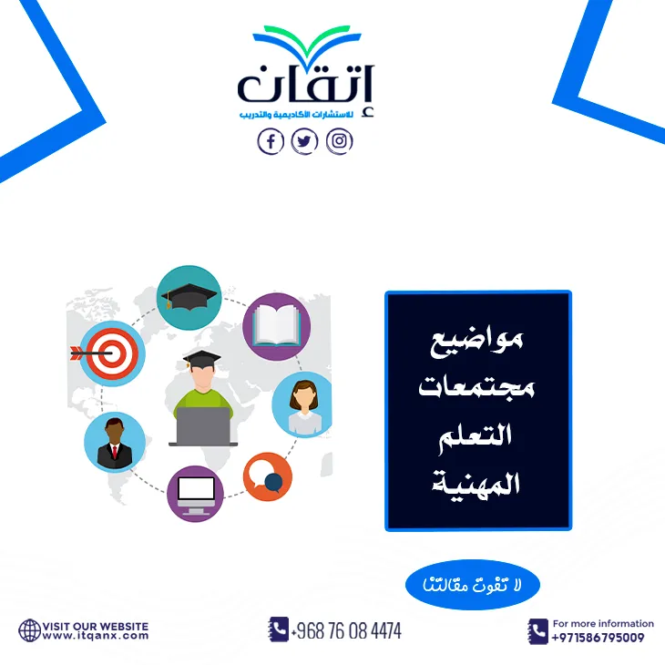 تُعتبر مواضيع مجتمعات التعلم المهنية من العناصر الأساسية التي تسهم في تعزيز التعلم والتطوير المهني للأفراد؛ من خلال استكشاف مفاهيم، مثل: التعلم المستمر، التعاون، والابتكار، تتيح هذه المجتمعات للأعضاء فرصة التفاعل وتبادل المعرفة والخبرات في بيئة داعمة، نحن أفضل شركات البحث العلمي في إتقان للاستشارات الأكاديمية والتدريب، كل ما عليك التواصل معنا عبر الواتساب.