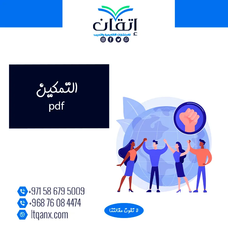 في الختام، يُعد التمكين وسيلة مهمة لتحسين حياة الأفراد والمجتمعات؛ من خلال تعزيز قدراتهم على اتخاذ القرارات وتحقيق الاستقلالية، يمكن الاستفادة من مصادر مثل التمكين PDF للحصول على مزيد من المعلومات حول كيفية تطبيق التمكين بفعالية، وكما تساهم شركة إتقان، المتخصصة في التدريب وخدمات البحث العلمي، في تسهيل الوصول إلى المعرفة والموارد التي تدعم استراتيجيات التمكين؛ مما يساعد الأفراد والمجتمعات على تحقيق أهدافهم بشكل أفضل، نقدم لك أهم مواقع نشر الأبحاث العلمية العربية والأجنبية، كل ما عليك التواصل معنا عبر الواتساب.