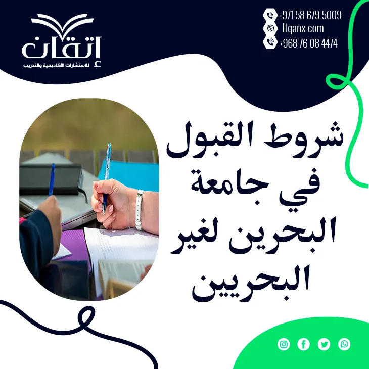 وفي نهاية مقالتنا يتضح أننا تعرفنا على مميزات الدراسة في البحرين، وشروط القبول في جامعة البحرين لغير البحريين، والمستندات المطلوبة لإكمال عملية القبول، كما أنه يمكنك أيضًا التواصل معنا نحن شركة اتقان للاستشارات الأكاديمية والتدريب، ويمكننا أن نساعدك في جميع التخصصات التي تخص القبول في الجامعة، نقدم لك المساعدة في كتابة الرسائل العلمية، وكل الاستشارات التي تخص الجامعات والاستمارات المطلوبة، فنحن لدينا العديد من المميزات، مثل: سمعتنا الجيدة في أنحاء الدول العربية، وفريق عمل متكامل، وثقة العملاء الذين يتعاملون معنا، فقط يمكنك إرسال رسالة عبر الواتساب؛ لنتمكن من مساعدتك في أسرع وقت.