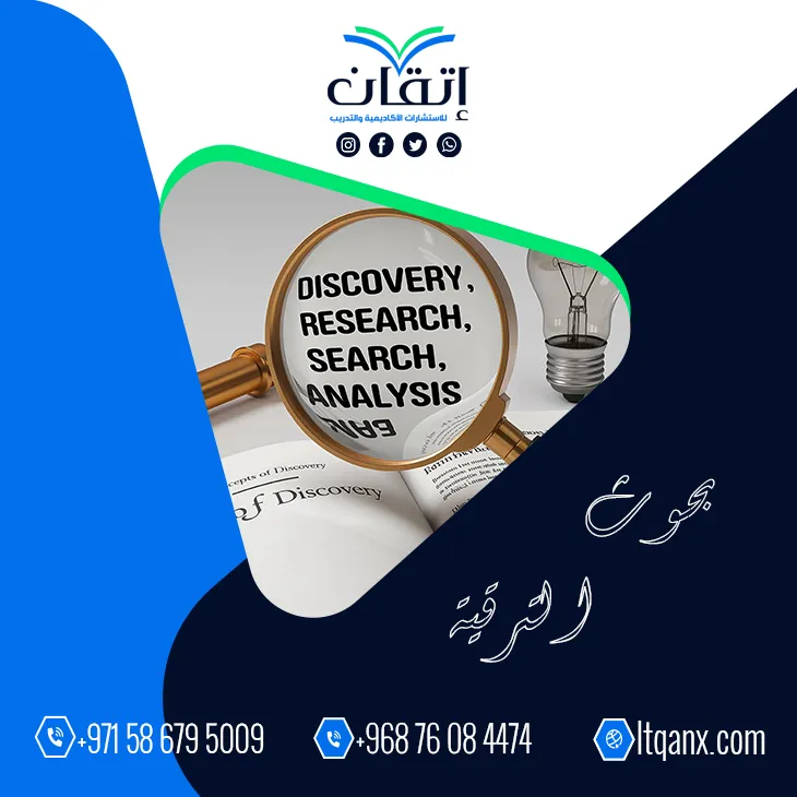 تعتبر بحوث الترقية عنصرًا أساسيًا في الحياة الأكاديمية؛ حيث تساهم في تطوير المعرفة وتعزيز المهارات البحثية؛ من خلال الالتزام بالشروط والمعايير المحددة، ويمكن للأكاديميين تحقيق نتائج إيجابية في مسيرتهم المهنية، وإن اللجوء إلى شركات مثل إتقان في مجال الاستشارات الأكاديمية والتدريب، نقدم لك خدمات البحث العلمي، ويمثل خطوة استراتيجية نحو تحقيق الأهداف الأكاديمية والمهنية؛ لذا فإن اختيار إتقان كجهة مساعدة يعد خيارًا حكيمًا لكل من يسعى إلى النجاح في ابحاث الترقية وتحقيق التميز الأكاديمي، كل ما عليك التواصل معنا عبر الواتساب.