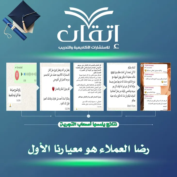 هل بدأت بالفعل في إعداد رسالة الماجستير أو الدكتوراه الخاصة بك وتشعر بعدم التأكد من سلامة الخطوات التي تتبعها؟ هل تواجه صعوبات متعددة أثناء استكمال مشروعك البحثي؟ لا تقلق بعد الآن! مع شركة إتقان للاستشارات الأكاديمية والتدريب ستتمكن من التواصل مع أفضل الخبراء في مجال البحث العلمي، واستطلاع آرائهم حول البحث الذي تقوم به بالفعل.