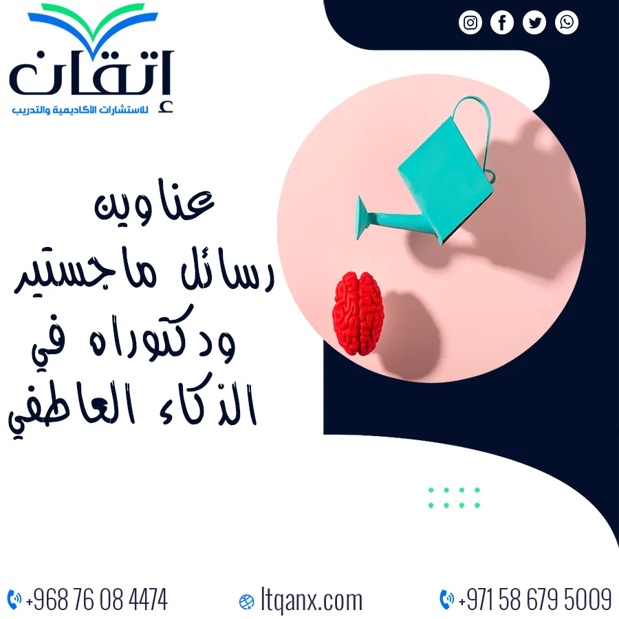 لم يعد النجاح الأكاديمي والمهني قائمًا فقط على الذكاء العقلي بل أصبح الذكاء العاطفي أحد أهم محركات التميز والتأثير في عصرنا الحالي؛ حيث إنه المرآة التي تعكس وعي الفرد بمشاعره وقدرته على إدارة انفعالاته، والتفاعل بفاعلية مع الآخرين، ومن هنا تزايد الاهتمام الأكاديمي باختيار عناوين رسائل ماجستير ودكتوراه في الذكاء العاطفي كمدخل لدراسة هذا المجال الحيوي، وتوظيفه في ميادين التربية والإدارة والقيادة، وإدراكًا من شركة إتقان للاستشارات الأكاديمية والتدريب لأهمية هذا التوجه البحثي حرصت على تقديم قائمة حديثة ومتميزة من العناوين التي تفتح أمام الباحثين آفاقًا جديدة وتساعدهم على صياغة دراسات أصيلة تثري المعرفة وتدعم مسيرتهم العلمية.