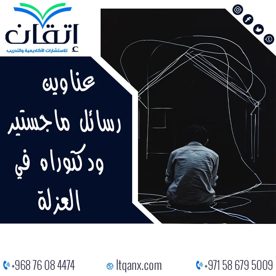 تُعَد العزلة ظاهرة إنسانية معقدة، تتقاطع فيها الأبعاد النفسية والاجتماعية والثقافية؛ حيث إنها ليست مجرد ابتعاد عن الآخرين، بل قد تكون خيارًا للتأمل والإبداع أو انعكاسًا لمشكلات ضاغطة يعيشها الفرد، ولأنها تمثل محورًا غنيًا بالدراسة والتحليل تزايد الاهتمام الأكاديمي بصياغة عناوين رسائل ماجستير ودكتوراه في العزلة تعكس أبعادها المتعددة وتفسيراتها الحديثة، وانطلاقًا من إدراك شركة إتقان للاستشارات الأكاديمية والتدريب لقيمة هذه المرحلة البحثية، فقد عملت على إعداد قائمة من أحدث العناوين المبتكرة التي تمنح الباحثين فرصة التميز العلمي والريادة في تناول هذا الموضوع، فاختيار العنوان المناسب لم يعد خطوة عابرة بل هو المفتاح نحو إنتاج بحث رصين يضيف الجديد إلى المعرفة الأكاديمية.