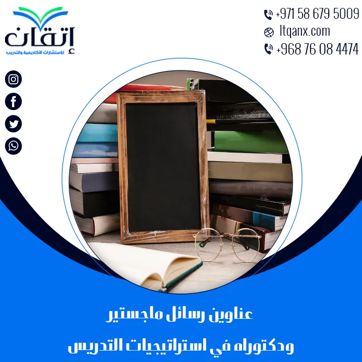 وفي نهاية المطاف تبقى استراتيجيات التدريس أداة جوهرية في تطوير التعليم، ورفع كفاءة الطلاب على مختلف المستويات، وما قدمناه من عناوين رسائل ماجستير ودكتوراه في استراتيجيات التدريس ما هو إلا نافذة تفتح أمام الباحثين مسارات جديدة نحو التميز الأكاديمي، ومع دعم شركة إتقان للاستشارات الأكاديمية والتدريب ستتمكن من صياغة بحثك بخطوات واثقة ووفق أعلى معايير الجودة العلمية، وكما نوفر لك عبر بوابة التميز الأكاديمية فرصة استثنائية للانطلاق نحو الإبداع والإنجاز؛ لذلك لا تتردد في التواصل معنا عبر الواتساب لتبدأ رحلتك العلمية مع فريقنا المتخصص، ومع إتقان اجعل من بحثك تجربة ملهمة تترك أثراً يمتد أبعد من صفحات الرسالة.