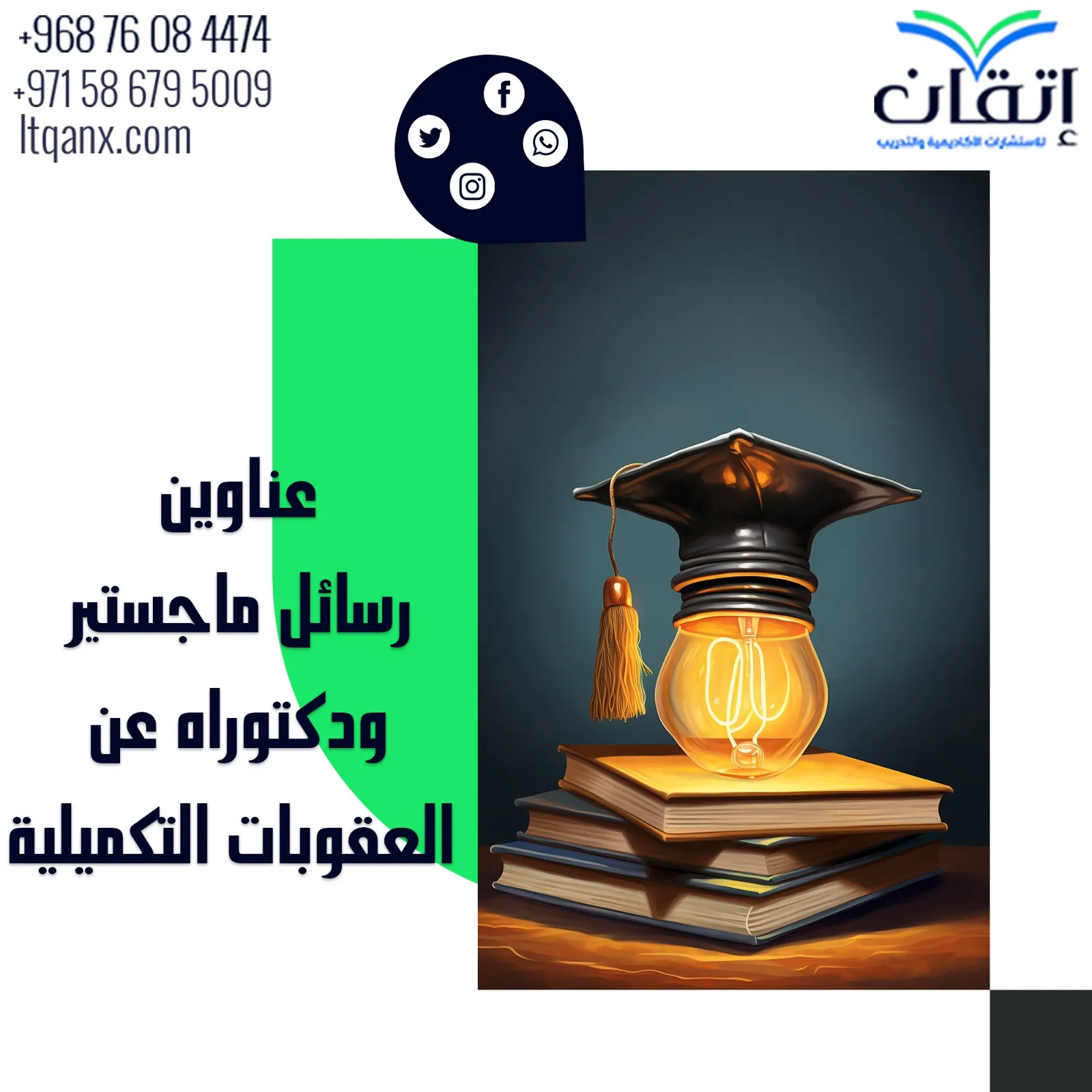 وفي الختام يتضح لنا أن العقوبات التكميلية تشكل جزءًا مهمًا من النظام الجنائي؛ لما لها من دور في تحقيق التوازن بين الردع والإصلاح وحماية المجتمع، وقد قدمت لكم شركة إتقان للاستشارات الأكاديمية والتدريب أفضل عناوين رسائل ماجستير ودكتوراه مبتكرة عن العقوبات التكميلية، وتقدم خدماتها في إعداد الرسائل العلمية بشكل احترافي عن طريق نخبة من الأساتذة المتخصصين، كل ما عليك هو التواصل معنا عبر الواتساب، وسيتم الرد عليكم في أسرع وقت.