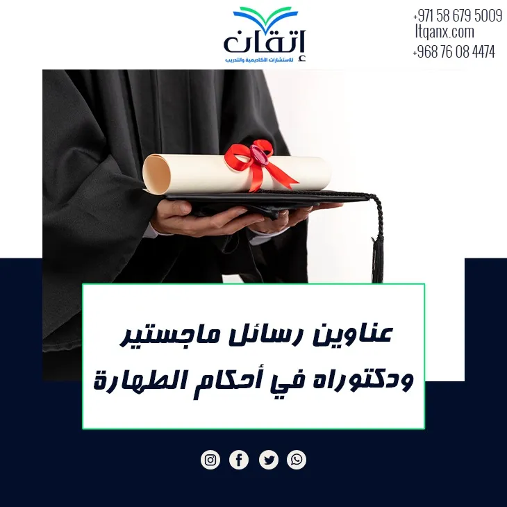 في ختام الحديث بعد أن قدمنا لكم مجموعة من أفضل عناوين رسائل ماجستير ودكتوراه مبتكرة في أحكام الطهارة، نسأل الله تعالى أن يوفق جميع الباحثين في مسيرتهم العلمية، وإن رغبت في أي وقت بالحصول على عناوين رسائل ماجستير ودكتوراه في مجال الفقه الإسلامي، كل ما عليك هو الاعتماد على شركة "إتقان" للاستشارات الأكاديمية والتدريبية؛ حيث يضم فريقنا نخبة من المتخصصين في هذا المجال، لا تتردد في التواصل معنا عبر تطبيق الواتساب.