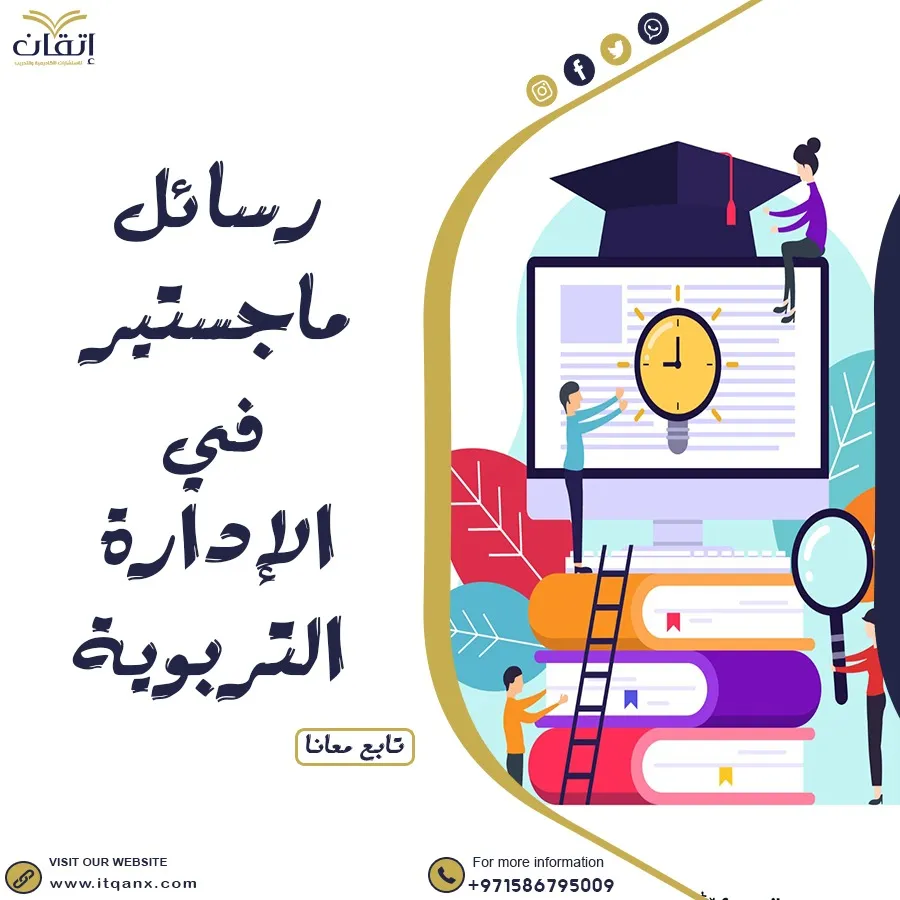 تمثل رسائل ماجستير في الإدارة التربوية مصدرًا غنيًا للمعلومات والأفكار التي تساعد الباحثين على تطوير دراساتهم وتعزيز معرفتهم بالمجال. من خلال تحميل هذه الرسائل بصيغة PDF مجانًا، يمكنك الاطلاع على أحدث الأبحاث والنماذج العلمية التي ستثري رؤيتك وتوجهك نحو إعداد رسالتك بأسلوب أكاديمي متميز، ونحن أفضل شركات البحث العلمي في إتقان للاستشارات الأكاديمية والتدريب، لدينا فريق عمل متخصص كل ما عليك التواصل معنا عبر الواتساب.