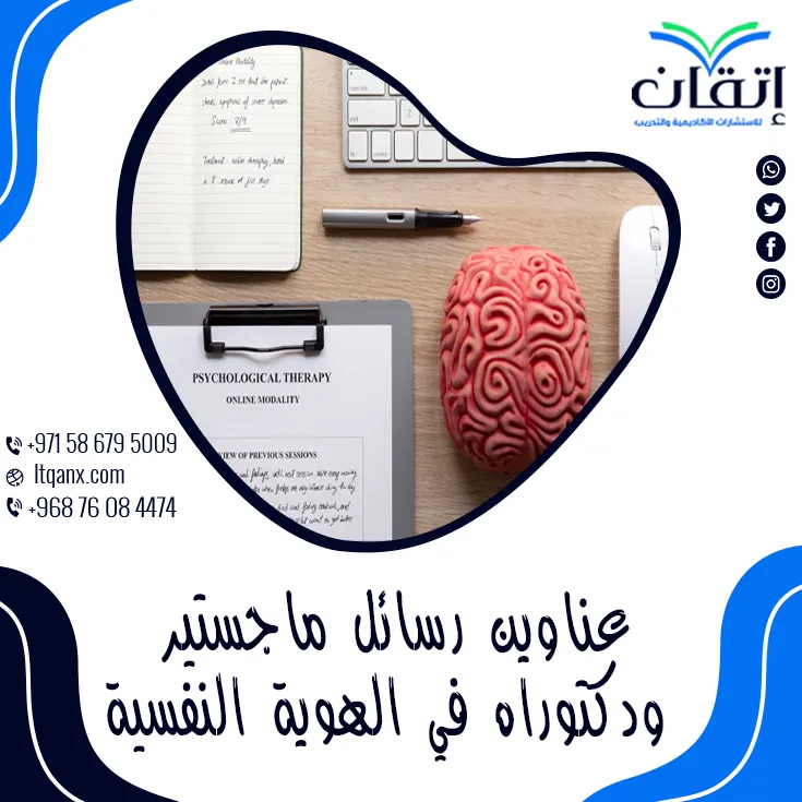 في زمن تتشكل فيه ملامح الإنسان من الداخل أكثر مما تشكله الظروف من الخارج تأتي الهوية النفسية كالبصمة الخفية التي تحدد طريقة رؤيتنا للعالم ولنفسنا، ومع تزايد فضول الباحثين حول هذا المفهوم العميق برز الطلب المتزايد على عناوين رسائل ماجستير ودكتوراه في الهوية النفسية التي تفتح أبوابًا جديدة للفهم والتحليل، وهنا تبرز شركة إتقان للاستشارات الأكاديمية والتدريب بروحها الإبداعية وجودتها المعهودة، وبفريق متميز يعرف تمامًا كيف يدعم الباحث ويمنحه ما يحتاجه، ومن هذا الإدراك قدمت إتقان قائمة حصرية من أحدث العناوين البحثية في هذا المجال لتلهم الباحثين وتدفعهم نحو التميز.