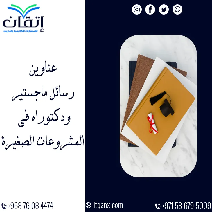 وفي ختام الحديث يظل موضوع المشروعات الصغيرة منطلقًا مهمًا لكل باحث يسعى لابتكار حلول وآفاق جديدة داخل عالم الأعمال، وتبقى شركة إتقان للاستشارات الأكاديمية والتدريب شريكك الأمثل للتميز الأكاديمي مقدمة نخبة من عناوين رسائل ماجستير ودكتوراه في المشروعات الصغيرة التي تمهد لطريق بحثي ناجح، وللحصول على دعم احترافي سريع يكفي أن تتواصل عبر الواتساب لتبدأ رحلتك العلمية بثقة وإتقان.
