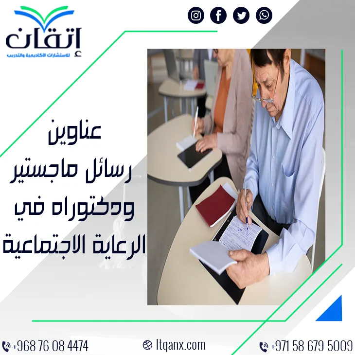في عالم تتشابك فيه احتياجات الأفراد والمجتمعات تبرز الرعاية الاجتماعية كقوة مؤثرة تساهم في تحسين نوعية الحياة وبناء توازن اجتماعي مستدام، ومع تزايد الاهتمام بهذا المجال الحيوي يبحث الباحثون عن عناوين رسائل ماجستير ودكتوراه في الرعاية الاجتماعية تعينهم على فهم أعمق وتقديم حلول مبتكرة، وهنا تبرز شركة إتقان للاستشارات الأكاديمية والتدريب بجودتها الاستثنائية وكفاءتها الإبداعية؛ وذلك بفضل فريق محترف يدرك أهمية هذا التخصص، ولتلبية احتياجات الباحثين أعدت إتقان قائمة حصرية من أحدث العناوين البحثية التي تدعم رحلتهم العلمية وتدفعهم نحو التميز.