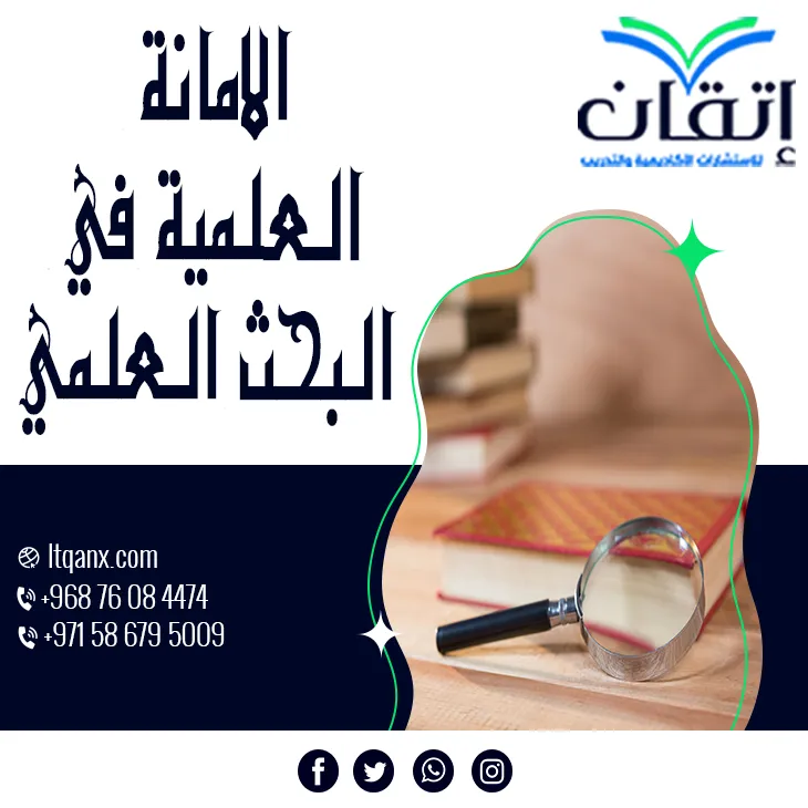 في الختام، تُعد الأمانة العلمية في البحث العلمي أساسًا لا غنى عنه لضمان جودة البحث ومصداقيته، وهي ما يميز الباحث الجاد عن غيره؛ لأن الالتزام بهذه المعايير قد يواجه تحديات، يمكنكم دائمًا الاعتماد على خبراء شركة إتقان للاستشارات الأكاديمية لتقديم الدعم العلمي والمراجعة الأكاديمية باحترافية، للتواصل المباشر والاستفسارات عبر الواتساب