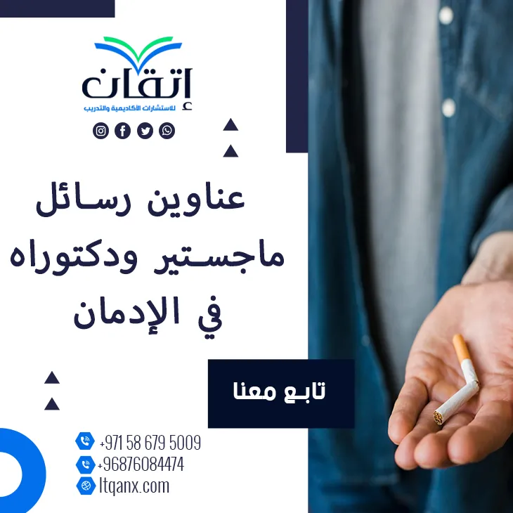 في عالم تتسارع فيه وتيرة الحياة وتتعدد فيه الضغوطات برزت ظاهرة الإدمان كإحدى القضايا التي تستحق الوقوف عندها بعمق وتأمل؛ حيث إن الإدمان لم يعد مجرد سلوك منحرف أو عادة سيئة بل أصبح قضية علمية وإنسانية تحتاج إلى بحث وتحليل لفهم دوافعها وآثارها وسبل الحد منها، وإدراكًا من شركة إتقان للاستشارات الأكاديمية والتدريب لأهمية هذا الموضوع في الأوساط البحثية، وحرصًا من إتقان على دعم الباحثين والطُّلاب حرصت على إعداد باقة حصرية من أهم وأحدث عناوين رسائل ماجستير ودكتوراه في الإدمان؛ لتكون مصدر إلهام وبداية قوية لكل من يسعى لتقديم دراسة علمية رصينة ومؤثرة، وتأتي هذه المبادرة في إطار تميز شركة إتقان بجودتها العالية وكفاءتها الإبداعية من خلال فريقها المتخصص في تقديم الدعم الأكاديمي باحترافية وابتكار.
