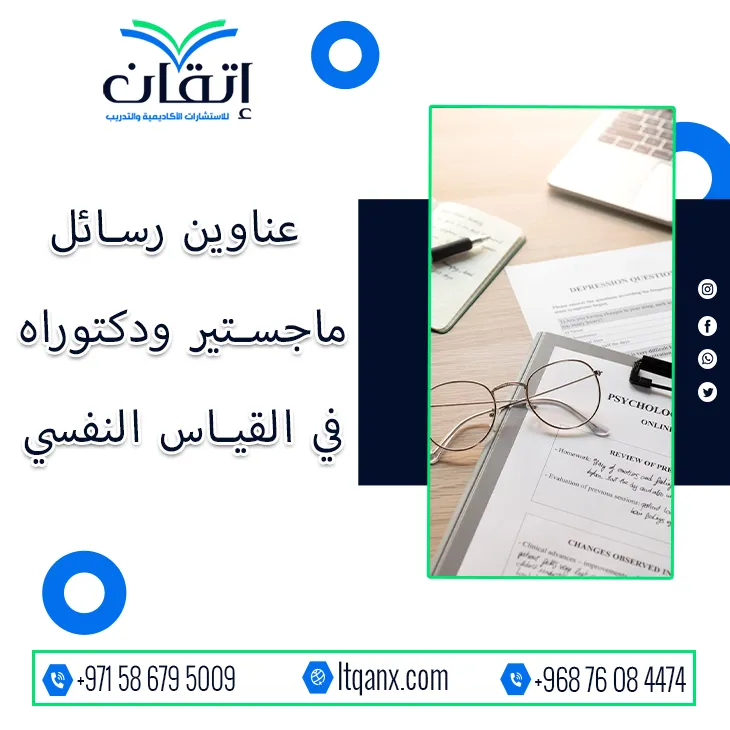 في عالمٍ يعتمد على الدقة والموضوعية لفهم السلوك البشري يبرز القياس النفسي كأداة أساسية تكشف عن أعماق الشخصية والقدرات والميول، ومع تزايد اهتمام الباحثين بهذا المجال أصبحت عناوين رسائل ماجستير ودكتوراه في القياس النفسي من أكثر الموارد طلبًا لتصميم بحوث علمية دقيقة ومبتكرة، وهنا تتألق شركة إتقان للاستشارات الأكاديمية والتدريب التي تتميز بجودة خدماتها وكفاءة فريقها الإبداعي في دعم الباحثين خطوة بخطوة، وإدراكًا لأهمية هذا المجال قدمت إتقان باقة حصرية من أحدث العناوين البحثية لدعم الباحثين وتشجيعهم على التميز الأكاديمي.