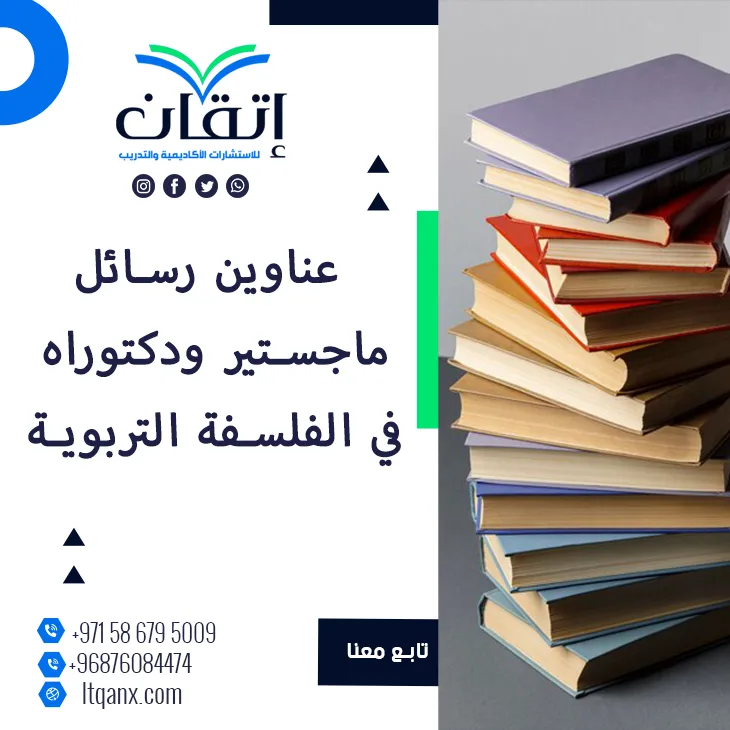 وفي النهاية يظل موضوع الفلسفة التربوية ركيزة أساسية للابتكار والتميز الأكاديمي؛ حيث إنها تُتيح صياغة عناوين رسائل ماجستير ودكتوراه في الفلسفة التربوية للباحثين إنتاج بحوث قيمة وذات أثر ملموس وتبرز هنا قوة شركة إتقان للاستشارات الأكاديمية والتدريب كشريك موثوق للنجاح؛ وذلك بفضل خبرة فريقها وكفاءته الإبداعية في تقديم حلول مبتكرة وعملية كما يمكن للباحثين التواصل بسهولة عبر الواتساب للحصول على الدعم الأكاديمي الكامل وتوجيههم نحو اختيار الموضوع الأمثل؛ مما يجعل رحلة البحث العلمي أكثر وضوحًا وسلاسة، ويضمن الوصول إلى نتائج مبتكرة ومتميزة تعكس جودة ومهنية عالية.