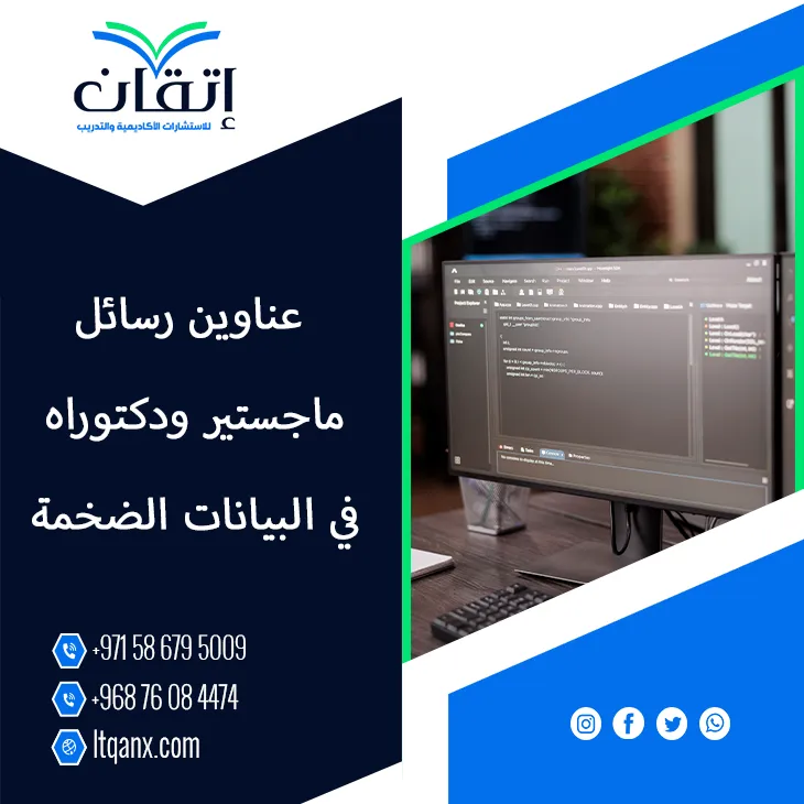 لم تعد البيانات الضخمة مجرد كم هائل من الأرقام بل أصبحت لغة العصر التي تقرأ بها اتجاهات المستقبل وتصنع بها القرارات الذكية، ومع تصاعد الاهتمام البحثي بهذا المجال يتجه الباحثون إلى استكشاف عناوين رسائل ماجستير ودكتوراه في البيانات الضخمة التي تجمع بين الحداثة والعمق العلمي، ومن هنا تتجلى ريادة شركة إتقان للاستشارات الأكاديمية والتدريب بما تتميز به من جودة وكفاءة إبداعية، مدعومةً بفريق عمل متمرس وذو خبرة عالية، وإدراكًا لأهمية هذا التخصص الحيوي حرصت إتقان على تقديم باقة منتقاة من أحدث وأهم العناوين البحثية دعمًا لمسيرة الباحثين الأكاديمية.