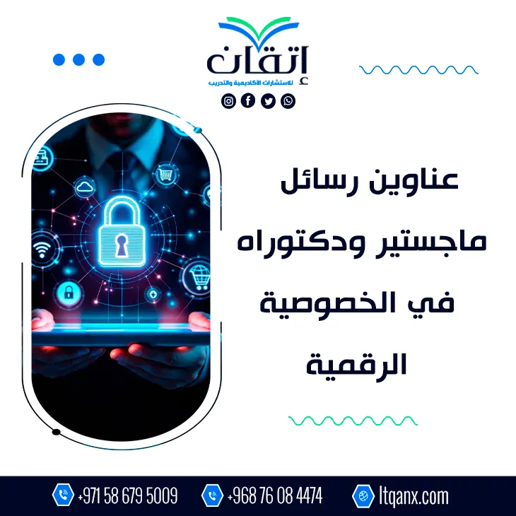 لم تعد الخصوصية الرقمية مجرد خيار تقني بل غدت ركيزة أساسية في عصر تتسارع فيه البيانات وتتقاطع فيه المنصات الذكية؛ مما جعل البحث في هذا المجال محورًا مهمًا لإعداد عناوين رسائل ماجستير ودكتوراه في الخصوصية الرقمية، وانطلاقًا من إدراكها العميق لأهمية الموضوع لدى الباحثين تبرز شركة إتقان للاستشارات الأكاديمية والتدريب بجودة خدماتها وكفاءتها الإبداعية، مستندةً إلى فريق عمل خبير يقدم باقة من أحدث وأهم العناوين البحثية دعمًا للمسار الأكاديمي.