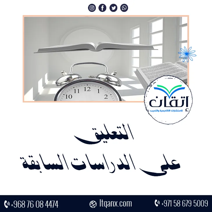 وفي عالم الأبحاث العلمية يُعد التعليق على الدراسات السابقة خطوة أساسية لبناء دراسة قوية وموثوقة، ومن هذا المنطلق تأتي شركة إتقان لتكون شريكك المثالي في كل مرحلة من مراحل البحث العلمي؛ حيث نقدم دعمًا احترافيًا في تحليل الدراسات السابقة، وتقديم التعليقات النقدية البناءة، ومساعدتك على صياغة محتوى علمي متكامل يعكس جودة بحثك، وللتواصل معنا مباشرة والحصول على الدعم الكامل، يمكنك مراسلتنا عبر الواتساب.