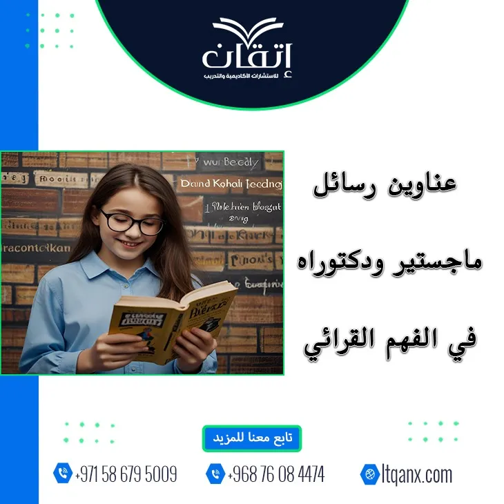 وفي ختام الحديث، يبقى الفهم القرائي حجر الأساس الذي يُبنى عليه الوعي المعرفي العميق، وتظل عناوين رسائل ماجستير ودكتوراه في الفهم القرائي مرآة تعكس تطور هذا المجال وتعاظم أهميته، ومع كل دراسة جديدة تتجدد فرص الارتقاء بمهارات القراءة والتحليل لدى المتعلمين، ولأن طريق التميز الأكاديمي يحتاج إلى شريك موثوق، تأتي شركة إتقان لتقدّم دعمًا احترافيًا يعزز نجاح الباحثين، وللحصول على المساندة الأكاديمية بكل سهولة، يمكنكم التواصل عبر تطبيق الواتساب في أي وقت، فخطوتكم القادمة نحو التفوق تبدأ من هنا.