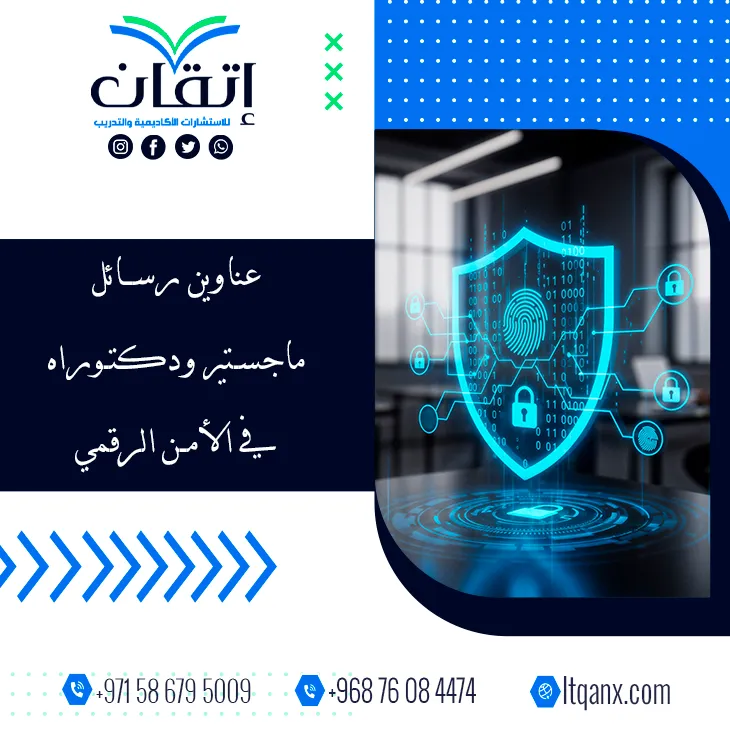 حين يتحول العالم إلى شاشة واحدة يصبح الأمن الرقمي هو الدرع الذي يحمي الحاضر ويصنع الثقة في المستقبل، ومع تصاعد اهتمام الباحثين بالبحث عن عناوين رسائل ماجستير ودكتوراه في الأمن الرقمي تتألق شركة إتقان للاستشارات الأكاديمية والتدريب بجودة لا تضاهى وكفاءة إبداعية يقودها فريق محترف يعرف احتياجات الباحث قبل أن يصرح بها، وإدراكًا منها لحساسية هذا المجال ودقته أعدت إتقان باقة حصرية تضم أحدث وأقوى العناوين البحثية، إنها ليست مجرد قائمة بل مفتاح لبداية بحثية واثقة، ومع كل عنوان تفتح نافذة جديدة نحو فهم أعمق وتطبيقات أكثر تأثيرًا في عالم الحماية الرقمية.