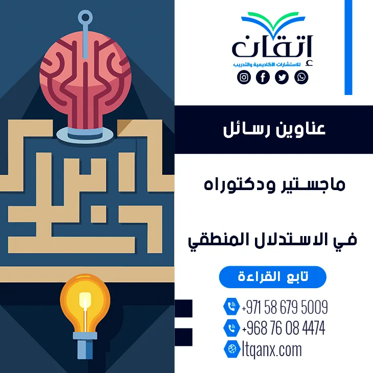 في عالم يسوده التساؤل والتحدي يصبح الاستدلال المنطقي البوصلة التي تهدي العقل نحو القرارات السليمة والتحليل الدقيق، فكل فكرة تتحول إلى حكم مدعوم بالأدلة والوعي، ومن هنا تنبع أهمية عناوين رسائل ماجستير ودكتوراه في الاستدلال المنطقي كخارطة معرفية تستكشف أعمق آليات التفكير والتحليل، وانطلاقًا من إدراك شركة إتقان للاستشارات الأكاديمية والتدريب لقيمة هذا المجال تميزت بجودة وكفاءة إبداعية عالية بفضل فريق عمل متميز، وقدمت باقة حديثة من أبرز العناوين البحثية لدعم الباحثين نحو التميز العلمي والابتكار.
