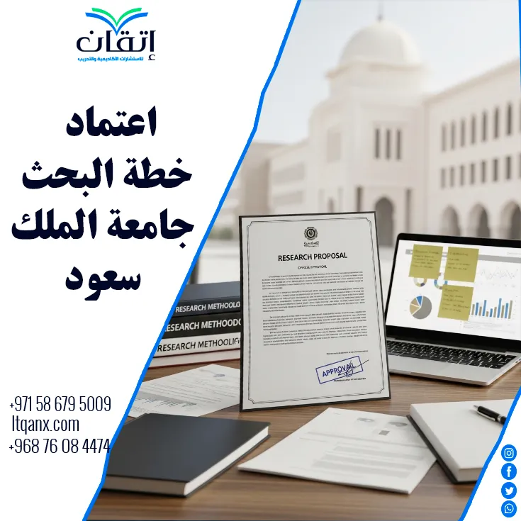 نجاح أي دراسة علمية يبدأ بـ اعتماد خطة البحث جامعة الملك سعود بطريقة صحيحة ومتوازنة؛ لتسهيل هذه الخطوة وضمان جودة الخطة، تقدم لك شركة إتقان للاستشارات الأكاديمية خدمات احترافية في إعداد ومراجعة خطط البحث والتحليل الإحصائي للطلاب والباحثين في السعودية والإمارات والكويت وقطر وعمان وجميع الدول العربية، تواصل معنا عبر الواتساب للحصول على خطة بحث مصممة خصيصًا لتسريع اعتمادها وضمان نجاح دراستك.