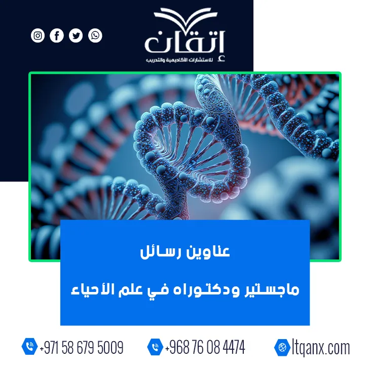 ينفتح علم الأحياء على عوالم مدهشة تكشف أسرار الحياة من أدق التفاعلات الخلوية إلى أعقد الأنظمة البيئية؛ مما يجعله ميدانًا خصبًا للبحث العلمي المتجدد، وهنا تتجلى أهمية عناوين رسائل ماجستير ودكتوراه في علم الأحياء في توجيه الدراسات نحو الابتكار والمعرفة الرصينة، وانطلاقًا من إدراكها لقيمة هذا المجال تقدم شركة إتقان للاستشارات الأكاديمية والتدريب قائمة من أحدث وأهم العناوين البحثية، مستندةً إلى الجودة والكفاءة الإبداعية التي يتميز بها فريقها الخبير لدعم الباحثين باحترافية.