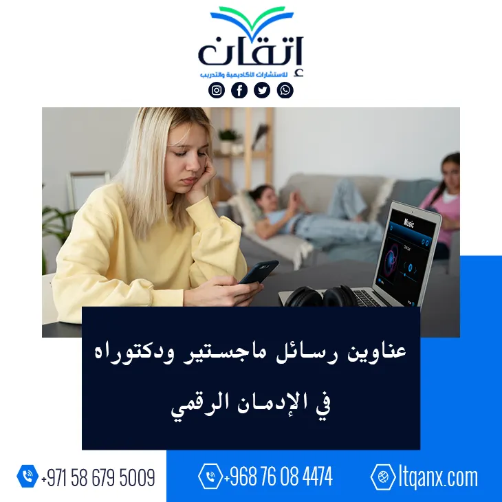 في زمن تتشابك فيه الشاشات مع تفاصيل الحياة اليومية برز الإدمان الرقمي كظاهرة بحثية عميقة تستدعي التأمل والتحليل العلمي، وهو ما منح عناوين رسائل ماجستير ودكتوراه في الإدمان الرقمي أهمية متزايدة لدى الباحثين، وانطلاقًا من ذلك تميزت شركة إتقان للاستشارات الأكاديمية والتدريب بجودة خدماتها وكفاءتها الإبداعية، مستندةً إلى فريق خبير أدرك حساسية هذا الموضوع، فقدم باقة من أحدث وأهم العناوين البحثية دعمًا للمسيرة الأكاديمية.