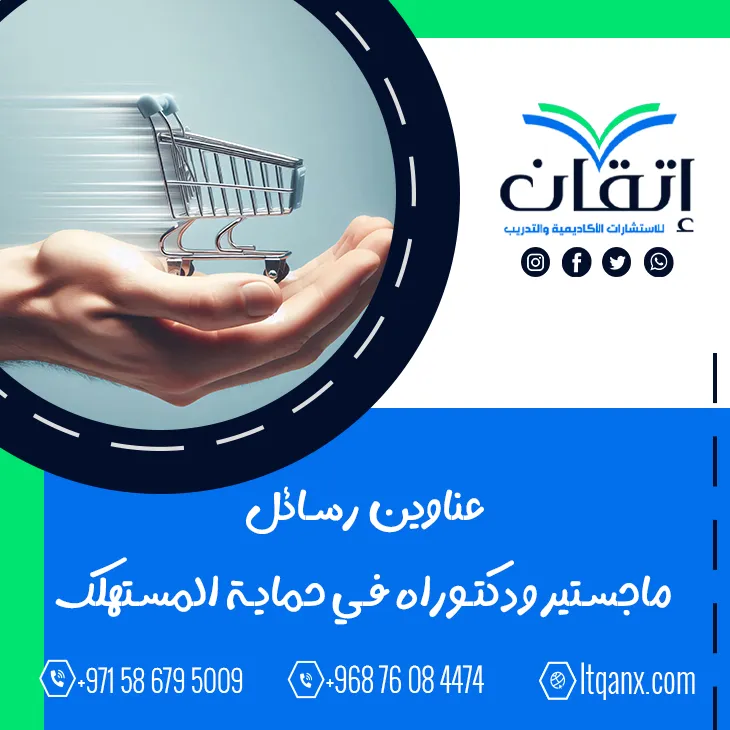 في زمن تتسارع فيه الأسواق وتتشابك المصالح التجارية أصبحت حماية المستهلك خط الدفاع الأول، لضمان العدالة والشفافية وتعزيز الثقة بين المنتج والمجتمع، ويتجه الباحثون اليوم نحو استكشاف عناوين رسائل ماجستير ودكتوراه في حماية المستهلك لفهم الأطر القانونية والاقتصادية التي تحمي الحقوق وتواكب التطورات الرقمية، ومن هذا المنطلق تتميز شركة إتقان للاستشارات الأكاديمية والتدريب بالجودة والكفاءة الإبداعية؛ وذلك بفضل فريق عمل خبير يمتلك رؤية علمية متقدمة، وإدراكًا لأهمية هذا الموضوع لدى الباحثين قدمت الشركة باقة من أحدث وأهم العناوين البحثية لدعم المسارات الأكاديمية والبحثية باحترافية عالية.