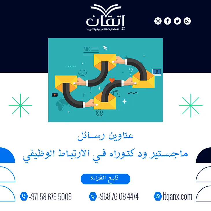 وفي النهاية يتضح أن الارتباط الوظيفي ليس مفهومًا تنظيميًا فحسب بل عنصرًا حاسمًا في بناء بيئات عمل ناجحة، وخاصةً مع تنوع عناوين رسائل ماجستير ودكتوراه في الارتباط الوظيفي، وتؤكد شركة إتقان للاستشارات الأكاديمية والتدريب مكانتها كشريك النجاح والتميز الأكاديمي لكل باحث طموح، ولأن التميز يبدأ بخطوة يمكنك التواصل عبر الواتساب بكل سهولة للحصول على دعم أكاديمي احترافي يرتقي ببحثك إلى أعلى المستويات.