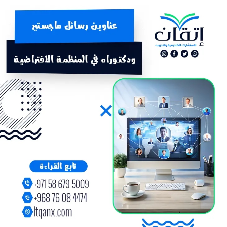 لم تعد حدود المنظمة ترسم بالجدران والمكاتب بل باتت تُصاغ عبر الشبكات الرقمية ومساحات العمل الذكية؛ حيث تتجسد ملامح المنظمة الافتراضية كأحد أبرز التحولات في الفكر الإداري المعاصر، ومن هذا المنطلق تتزايد حاجة الباحثين إلى استكشاف هذا المجال عبر الاطلاع على عناوين رسائل ماجستير ودكتوراه في المنظمة الافتراضية التي تعكس أحدث الاتجاهات البحثية، وانطلاقًا من إدراكها لأهمية هذا الموضوع تقدم شركة إتقان للاستشارات الأكاديمية والتدريب باقة منتقاة من أحدث العناوين البحثية، مستندةً إلى جودة العمل وكفاءة إبداعية يمتلكها فريق متخصص وذو خبرة واسعة في دعم الباحثين أكاديميًا.