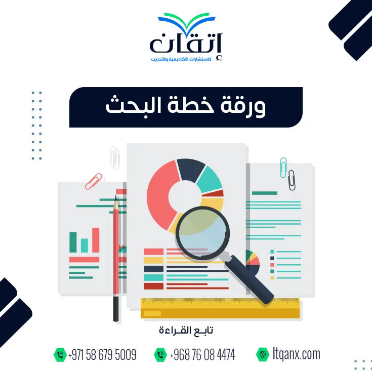 مع إتقان للاستشارات الاكاديمية والتدريب يصبح إعداد الدراسات البحثية وتجهيز ورقة خطة البحث تجربة احترافية وسهلة؛ حيث تقدم الشركة خدمات البحث العلمية والدورات التدريبية المتخصصة في الدول العربية، مثل: المملكة العربية السعودية، الإمارات، عمان، والكويت، ويمكنكم التواصل مع فريق إتقان للاستشارات الاكاديمية والتدريب، ونقدم لك كتابة بحوث جامعية واعداد الابحاث والتقارير العلمية، ويمكنك التواصل مباشرة عبر الواتساب للحصول على الدعم والإرشاد العلمي الذي يضمن نجاح أبحاثكم وتحقيق أهدافكم الأكاديمية بكفاءة واحترافية.