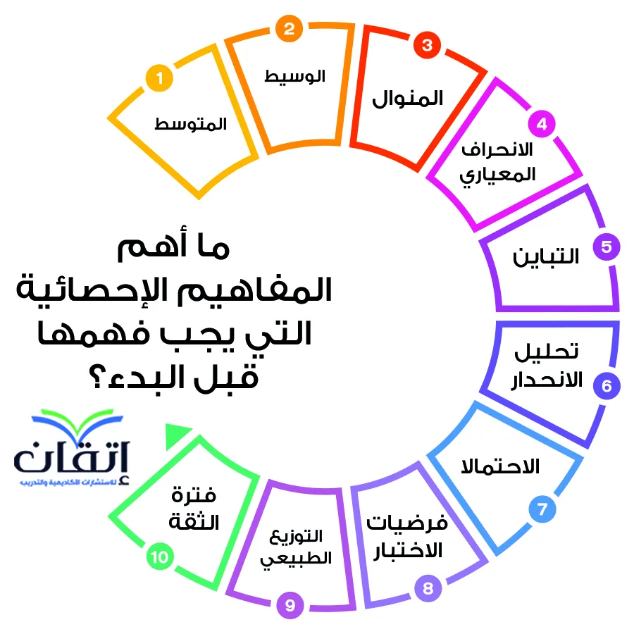 فهم المفاهيم الإحصائية المختلفة يُعتبر حجر الزاوية لتطبيق التحليل الإحصائي للأبحاث بشكل دقيق وفعَال، يكمن ذلك من خلال شرح تحليل الاحصائي، من هذه المفاهيم ما يلي: