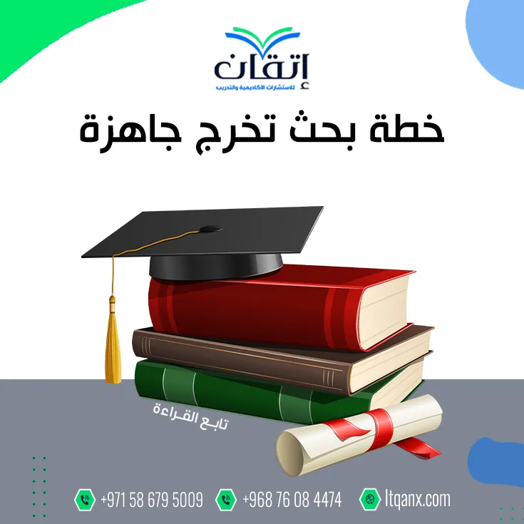 تقدم شركة إتقان للاستشارات الأكاديمية والتدريب خدمات متكاملة للطلاب والباحثين في إعداد خطط البحث العلمي، بما في ذلك خدمة إعداد خطة بحث تخرج جاهزة، كما توفر الشركة دورات تدريبية متخصصة في البحث العملي في الدول العربية مثل المملكة العربية السعودية، الإمارات، قطر، وعمان، نقدم لك المساعدة في كتابة خطة البحث العلمي، ويمكن للطلاب التواصل مع فريق اتقان للاستشارات الاكاديمية والتدريب بسهولة عبر الواتساب للحصول على استشارات دقيقة ودعم كامل في جميع مراحل البحث الأكاديمي.