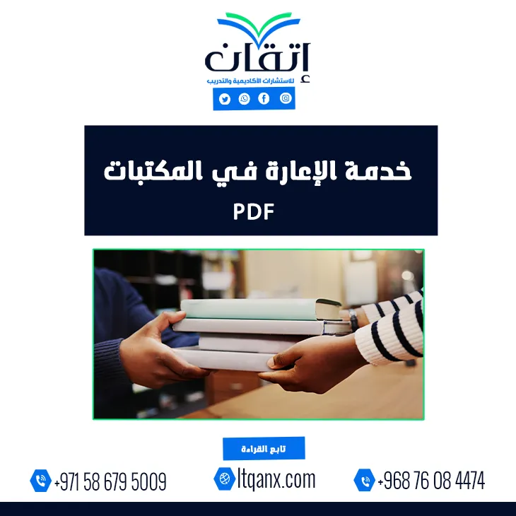 في عصرٍ أصبحت فيه المعرفة رقمية ومتاحة بضغطة زر، تُبرز خدمة الإعارة في المكتبات PDFكجسر يربط بين القارئ والمعلومة دون قيود الزمان أو المكان، فلم تعد الكتب حبيسة الأرفف، بل باتت تمتد إلى عوالم رقمية، تُمكّن الباحثين والطلاب من الوصول إلى المصادر بسهولة وسرعة، وبينما تتطور خدمات الإعارة لتواكب العصر، تأتي شركة إتقان لتكون شريكًا معرفيًا يدعم الباحثين والمستفيدين في رحلتهم العلمية، ومن خلال توفير خدمات بحثية متكاملة تعزز من فاعلية الوصول إلى المعرفة، وهكذا تظل الإعارة بكل أشكالها شريانًا نابضًا يغذي الفكر، ويضيء دروب الاكتشاف لكل من يسعى للمعرفة، شركة إتقان للاستشارات الأكاديمية فقط كل ما عليك التواصل معنا عبر الواتساب.