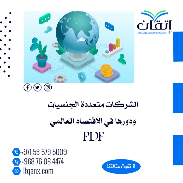 تعتبر الشركات متعددة الجنسيات ودورها في الاقتصاد العالمي PDFمن العناصر الحيوية في الاقتصاد العالمي؛ حيث تلعب دورًا محوريًا في تعزيز النمو الاقتصادي وتطوير العمليات الإنتاجية؛ من خلال استثماراتها الضخمة في مختلف الدول، تسهم هذه الشركات في خلق فرص العمل وتطوير البنية التحتية؛ مما ينعكس إيجابًا على مستويات المعيشة، نحن أفضل شركات البحث العلمي في إتقان للاستشارات الأكاديمية والتدريب، نقدم لك خطوات وشروط الالتحاق بدرجتي الماجستير والدكتوراه، كل ما عليك التواصل معنا عبر الواتساب.