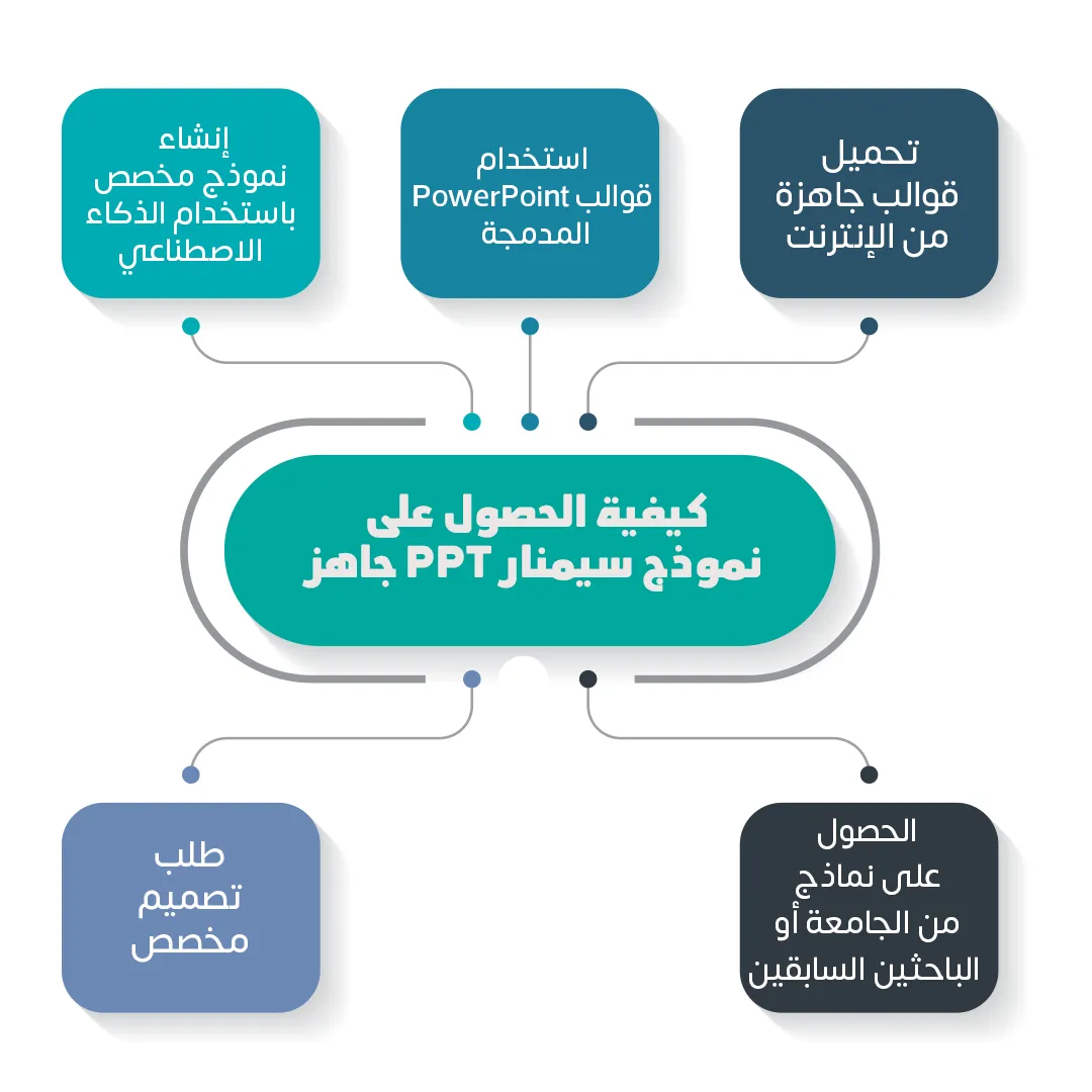 إذا كنت بحاجة إلى نموذج سيمنار PPT جاهز لعرض رسالتك بطريقة احترافية، فهناك عدة طرق يمكنك الاعتماد عليها: