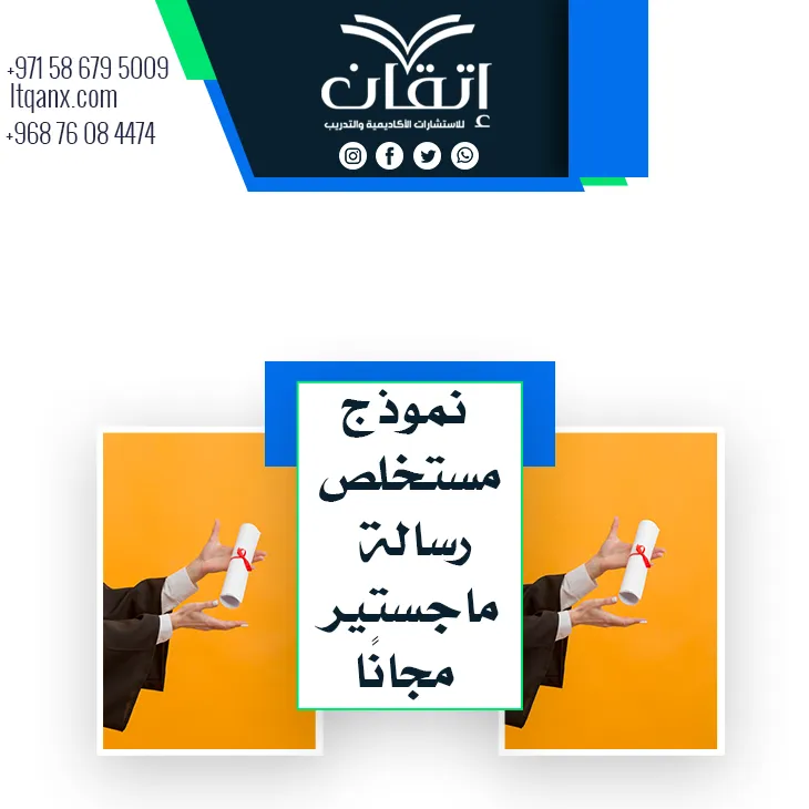 بهذا نكون قد أنهينا رحلتنا في بحثنا؛ حيث استعرضنا موضوعنا، ولقد أولينا هذا الموضوع اهتمامًا كبيرًا وخصصنا له وقتًا كافيًا؛ لاستكشاف جميع جوانبه وتفاصيله، كما سعينا للإجابة على أي تساؤلات قد تطرأ في الأذهان حول موضوع نموذج مستخلص رسالة ماجستير، إذا كنت مهتمًا بالحصول على مزيد من المعلومات والدراسات حول هذا الموضوع، فلا تتردد من التواصل معنا نحن شركة إتقان للاستشارات الأكاديمية والتدريب، نقدم لك مواقع تساعدك على البحث العلمي بطريقة احترافية بفضل فريقنا المتخصص وذوي الخبرة، ويمكنك التواصل بنا عبر واتساب.