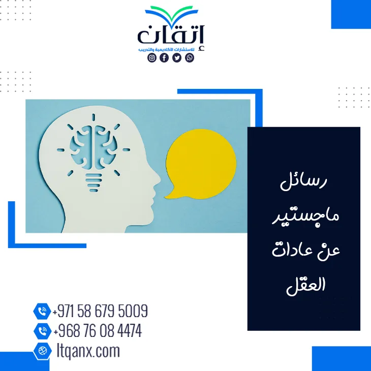 في ختامنا لهذا النقاش حول رسائل ماجستير عن عادات العقل، يمكن القول: إنها تعتبر أداة أساسية للتواصل الأكاديمي والعلمي، وتهدف الرسالة إلى توفير أسلوب موحَّد، ومنهجي، وتكون بشكل منظم، وواضح، ومنطقي في مختلف التخصصات، نحن شركة إتقان للاستشارات الأكاديمية نقدم لك مكاتب كتابة رسائل علمية، وكل ما عليك اغتنام الفرصة، والتواصل معنا عبر الواتساب.