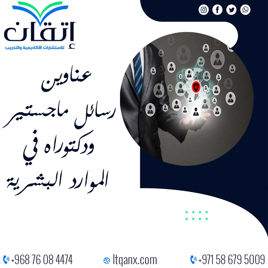 وفي الختام تظل إدارة الموارد البشرية حجر الزاوية في بناء المؤسسات الحديثة؛ حيث إنها المسؤولة عن تطوير الكفاءات، وتعزيز بيئة العمل، وتحقيق الأداء المتميز للمنظمة؛ مما يجعل البحث الأكاديمي في هذا المجال ضرورة لا غنى عنها، وهو ما ينعكس في أهمية عناوين رسائل ماجستير ودكتوراه في الموارد البشرية كمرجع أساسي للباحثين لاستكشاف أفضل الممارسات والأساليب الحديثة، وإذا كنت تبحث عن دعم متخصص يساعدك في صياغة بحوثك واقتراح عناوين مبتكرة تتناسب مع موضوع رسالتك، فإن شركة إتقان للاستشارات الأكاديمية والتدريب توفر لك خبراتها؛ لضمان التميز والنجاح في مسيرتك العلمية، ويمكنك التواصل معنا مباشرة عبر الواتساب للبدء بخطواتك البحثية بثقة واحترافية.