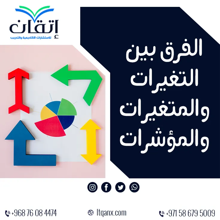 فهم الفرق بين التغيرات والمتغيرات والمؤشرات يضمن تصميم البحث بدقة وتحليل النتائج بشكل علمي واضح، تساعد هذه المعرفة الباحث على اختيار أدوات القياس الصحيحة وتفسير البيانات بموضوعية، ومع خبرة شركة إتقان للاستشارات الأكاديمية والتدريب، يمكن الحصول على دعم متكامل لضمان جودة البحث وموثوقية نتائجه، يمكنك التواصل معنا عبر الواتساب.