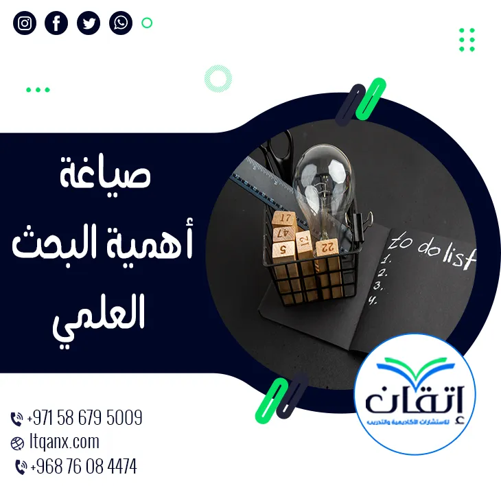 في ختام الحديث عن صياغة أهمية البحث العلمي يتضح أن صياغة هذا الجزء بدقة ووضوح يمثل حجر الأساس لأي دراسة أكاديمية ناجحة؛ فالأهمية لا تقتصر على توضيح قيمة البحث فحسب بل تظهر أيضًا مساهمة الدراسة في إثراء المعرفة العلمية وحل المشكلات العملية، وتكون شركة إتقان في انتظاركم؛ لمساعدتكم عبر تقديم خدمات البحث العلمي المتنوعة والمميزة، ويمكنكم طلبها من خلال التواصل عبر الواتساب.