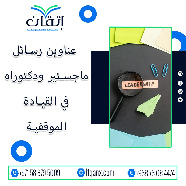 وفي نهاية الحديث عن هذا المجال الحيوي نؤكد أن شركة إتقان للاستشارات الأكاديمية والتدريب هي شريكك الحقيقي للنجاح والتميز الأكاديمي؛ حيث إنها تدرك بعمق أهمية اختيار الأطروحة وتوظيف المفاهيم الحديثة، بما في ذلك توظيف أفضل عناوين رسائل ماجستير ودكتوراه في القيادة الموقفية؛ لتحويل أفكارك البحثية إلى واقع متميز والحصول على الدعم الأكاديمي المتكامل ندعوك للتواصل معنا بكل سهولة عبر تطبيق الواتساب الآن.