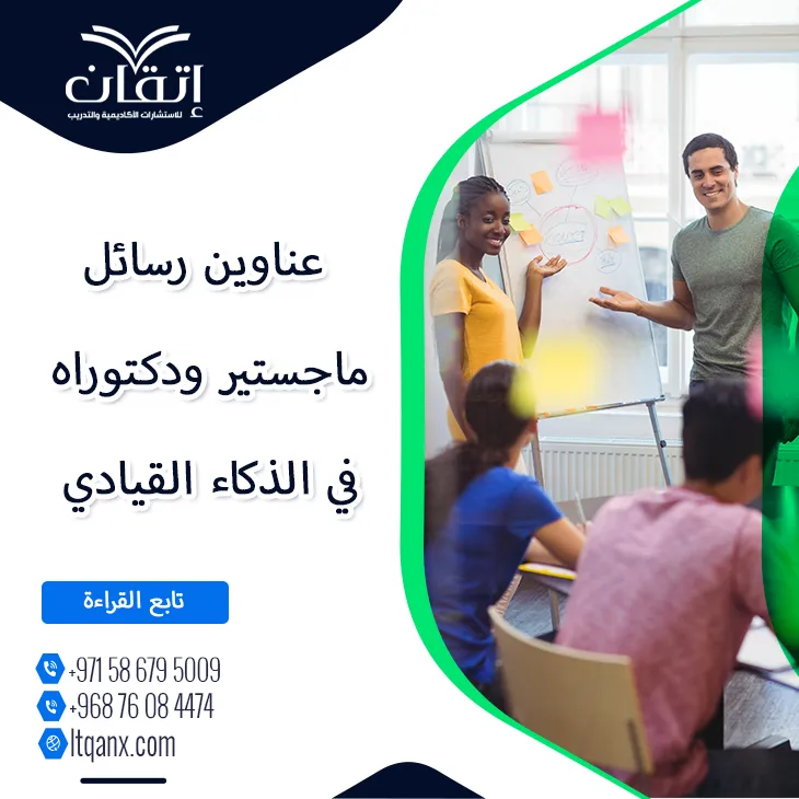 وفي الختام، يظل الذكاء القيادي حجر الأساس في بناء قيادات واعية قادرة على اتخاذ القرار والتأثير الإيجابي في البيئات المؤسسية، وقد عكست عناوين رسائل ماجستير ودكتوراه في الذكاء القيادي الاهتمام المتزايد به كمدخل علمي حديث لدراسة القيادة بعمق وفاعلية، ومن هنا، تبرز شركة إتقان بوصفها شريك النجاح والتميز الأكاديمي في دعم الباحثين وتوجيههم وفق أسس علمية رصينة، إذ تسهم خبراتها المتخصصة في تحويل الأفكار البحثية إلى منجزات أكاديمية متكاملة، وللحصول على دعم أكاديمي موثوق بكل سهولة، يتيح التواصل عبر تطبيق الواتساب فرصة الانطلاق بثقة نحو التميز العلمي.