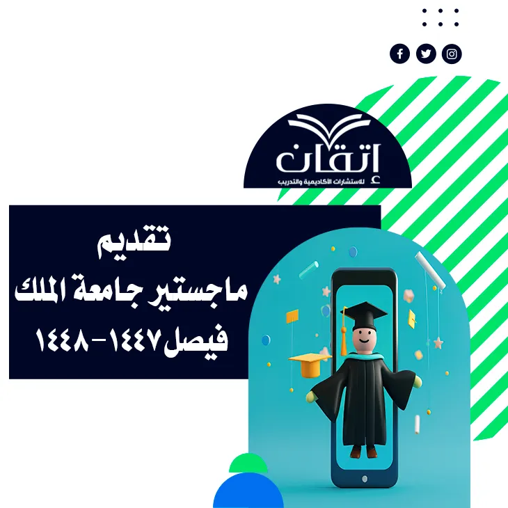 بعد التعرف على تقديم ماجستير جامعة الملك فيصل1447-1448هــ، من مواعيد التقديم، شروط القبول، المتطلبات الأساسية، يمكن للطلاب الآن التخطيط بشكل أفضل للالتحاق ببرامج الدراسات العليا وضمان تقديم طلباتهم بشكل كامل وصحيح، ولطلاب الدراسات العليا والباحثين الذين يسعون لتقديم رسائل ماجستير ودكتوراه متقنة، تقدم شركة إتقان للاستشارات الأكاديمية والتدريب خدمات متخصصة في البحث العلمي، وتُعد شركة اتقان شريكك الموثوق في رحلتك الأكاديمية، يعتمد فريقنا على خبرة طويلة، فلا تتردد في التواصل على الواتساب الآن.