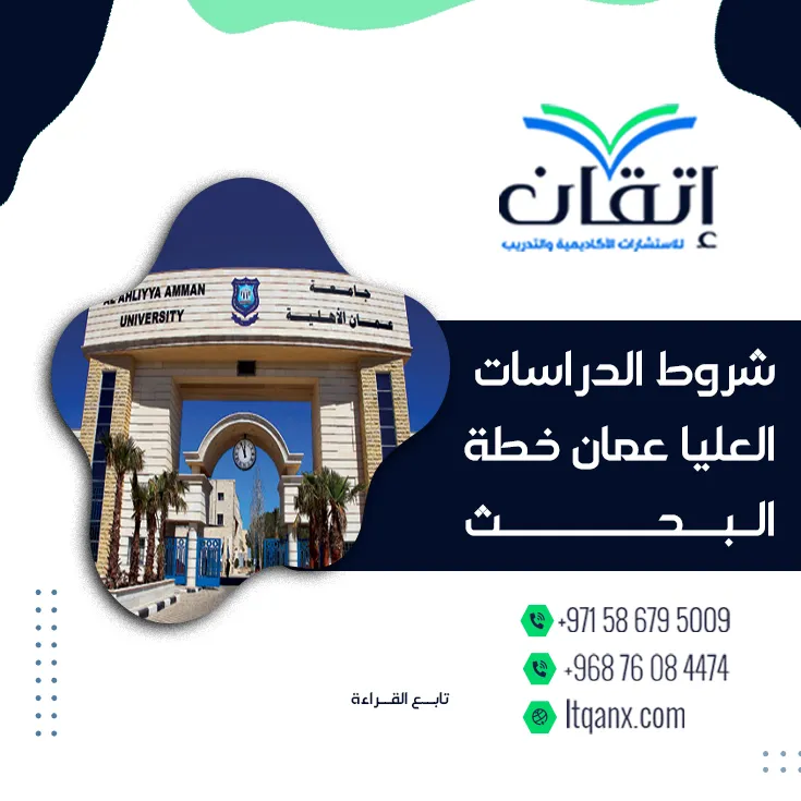 نرجو أن نكون ألهمناكم لمواصلة جهودكم البحثية، وإذا كنت ترغب في المزيد من المعلومات والدراسات حول أي موضوع، أو بحث، أو معرفة ما هي شروط الدراسات العليا عمان خطة البحث فلا تتردد في التواصل معنا في شركة إتقان للاستشارات الاكاديمية والتدريب؛ لدينا فريق ذو خبرة واسعة ويعد من الشركات الرائدة في الوطن العربي، ونقدم أفضل خدمات البحث العلمي، وللاستفسار يمكن التواصل معنا عبر الواتساب للرد السريع.