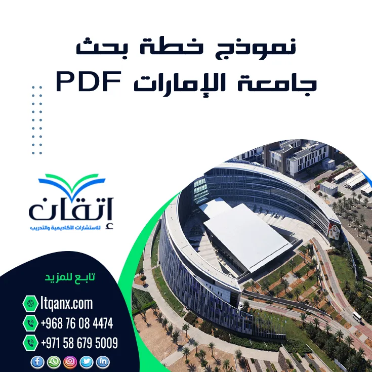 في ختام مقالنا وبعد أن تعرفنا على أهمية الاطلاع على نموذج خطة بحث جامعة الإمارات pdf ودوره في تنظيم وإعداد البحوث العلمية بشكل احترافي، نجد أن الاستعانة بجهات متخصصة أصبح أمر ضروري لتحقيق أفضل النتائج الأكاديمية، وهنا تبرز شركة إتقان للاستشارات الأكاديمية والتدريب كخيار موثوق؛ حيث تقدم خدمات متكاملة في البحث العلمي والدورات التدريبية في مختلف الدول العربية، مثل: الإمارات، والسعودية، وعُمان، ونقدم لك كتابة بحوث جامعية واعداد الابحاث والتقارير العلمية، كما تتيح الشركة سهولة التواصل مع فريقها المختص عبر الواتساب، لتقديم الدعم السريع والإجابة على جميع الاستفسارات؛ مما يجعل رحلتك الأكاديمية أكثر سلاسة ونجاح.