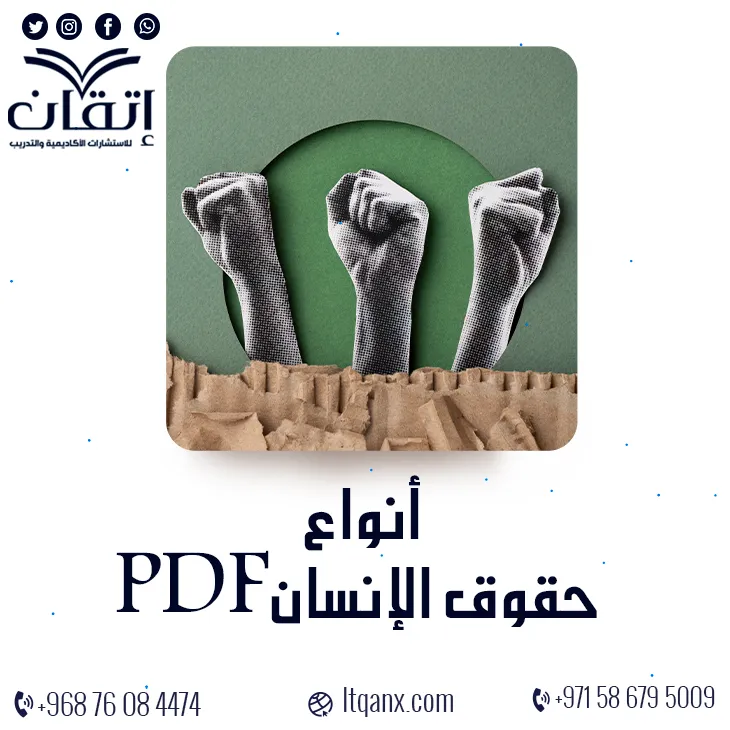 تُعتبر أنواع حقوق الإنسان PDFمن الأسس الحيوية التي تضمن كرامة الأفراد وتساهم في بناء مجتمعات عادلة ومتوازنة، تشمل هذه الأنواع الحقوق المدنية والسياسية، والحقوق الاقتصادية والاجتماعية، والحقوق الثقافية، وحقوق البيئة، وكل منها يلعب دورًا مهمًا في تحقيق الرفاهية والعدالة، إن شركة إتقان للاستشارات الأكاديمية تقدم لك خدمات البحث العلمي، تواصل معنا عبر الواتساب، و سوف تتلقى الرد في أسرع وقت.