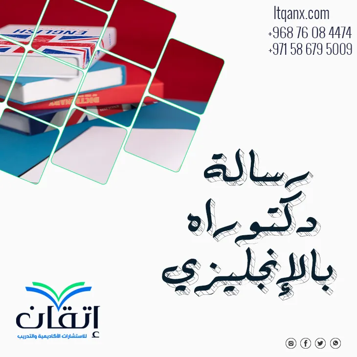 كما أن نؤمن بأن إعداد رسالة دكتوراة بالإنجليزي يتطلب مزيج من الدقة اللغوية والمعرفة الأكاديمية المتعمقة، ولهذا السبب نقدم لكم خدمة تدقيق لغوي متخصصة تضمن أن تكون رسالتكم خالية من الأخطاء مع الحفاظ على سلاسة اللغة وجودتها العالية، سواء كانت دراستكم تتطلب تحليل معقد أو عرض أكاديمي مميز، فريقنا المتخصص مستعد دائمًا لدعمكم في تحقيق أفضل النتائج اعتمدوا على إتقان لتكونوا واثقين أن رسالتكم ستكون في أيد أمينة، مُعدة بكل إتقان وباحترافية عالية، نحن أفضل شركات البحث العلمي في إتقان للاستشارات الأكاديمية والتدريب، نقدم لك مراكز الاستشارات الأكاديمية، كل ما عليك التواصل معنا عبر الواتساب.