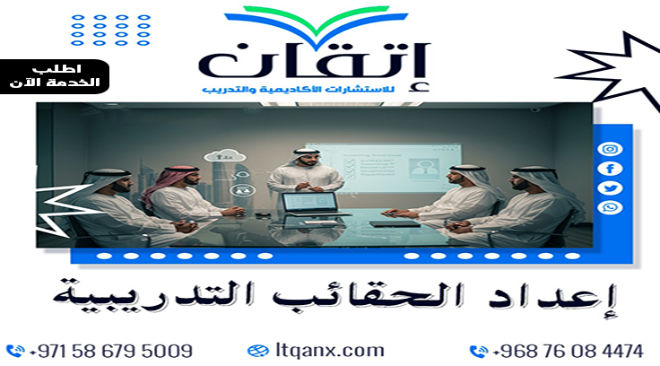 هل تبحث عن طريقة احترافية تُساعدك في إعداد الحقائب التدريبية الفعالة؟ نفخر في شركة إتقان للاستشارات الأكاديمية والتدريب بتقديم خدمة إعداد وتصميم البرامج التدريبية المُتكاملة والفعالة في مُختلف التخصصات، لأننا نفهم احتياجاتك ونحرص على تلبيتها، وهدفنا الرئيسي هو تحقيق الريادة والتميز في اعداد البرامج التدريبية لعملائنا؛ لهذا نحرص على التطوير المُستمر للحلول التدريبية المُتكاملة المُقدمة في البرنامج التدريبي المُقترح.